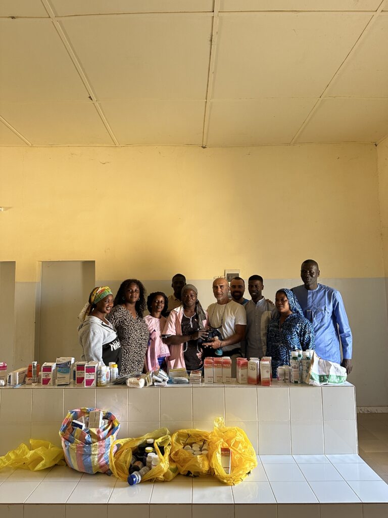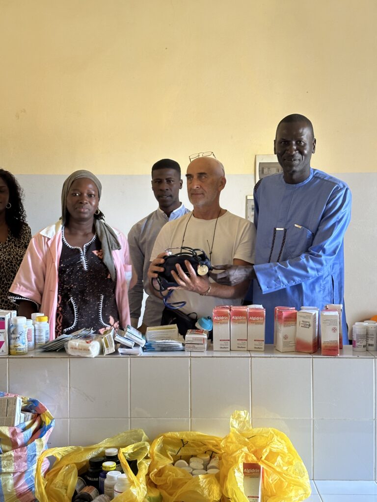 Dal 2011 ad oggi i volontari e le volontarie che hanno compiuto viaggi a Gandon, oltre a portare attrezzature sportive, palloni, maglie ecc., hanno consegnato medicinali, alimenti per l’infanzia, strumentazione sanitaria, dai più semplici termometri ai più sofisticati stetoscopi e misuratori di pressione, a diversi ambulatori locali e ad altre associazioni che si occupano di interventi sanitari.